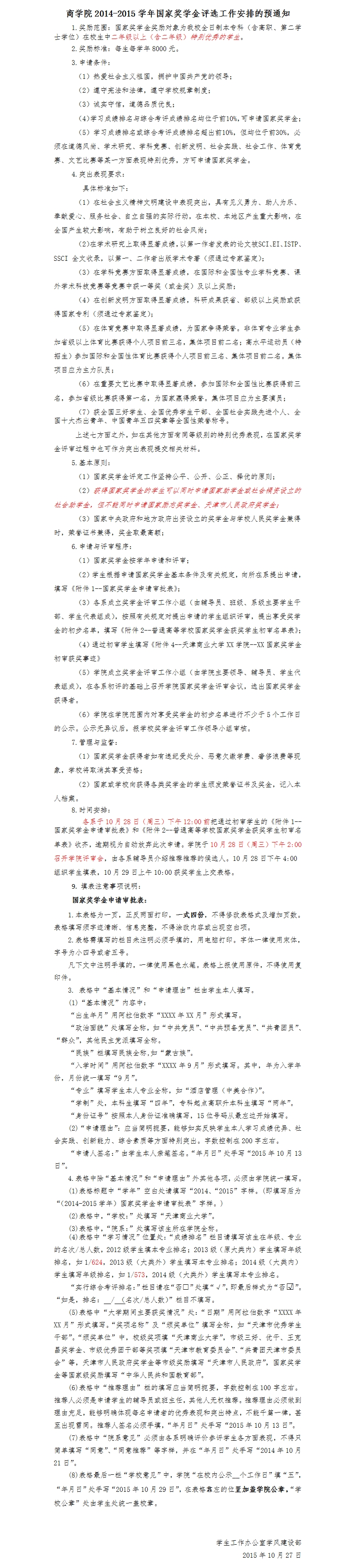 商公司2014-2015学年国家奖学金评选工作安排的预通知