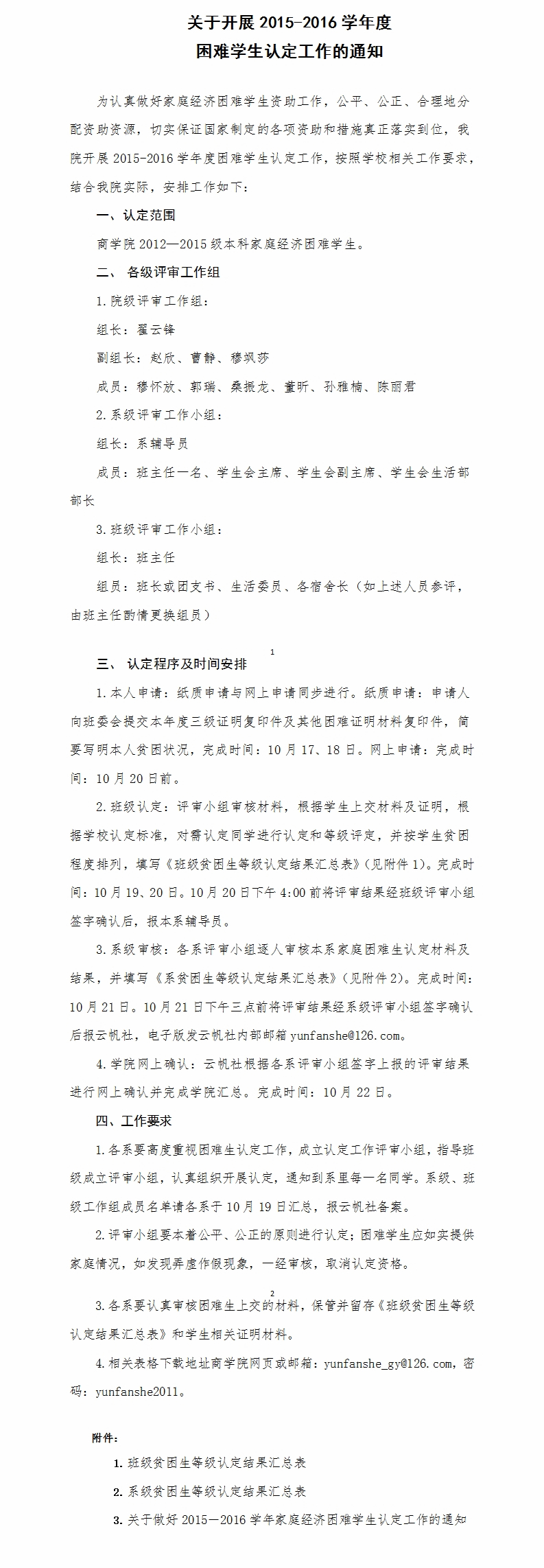 附件3:关于做好2015-2016学年困难生认定工作的通知