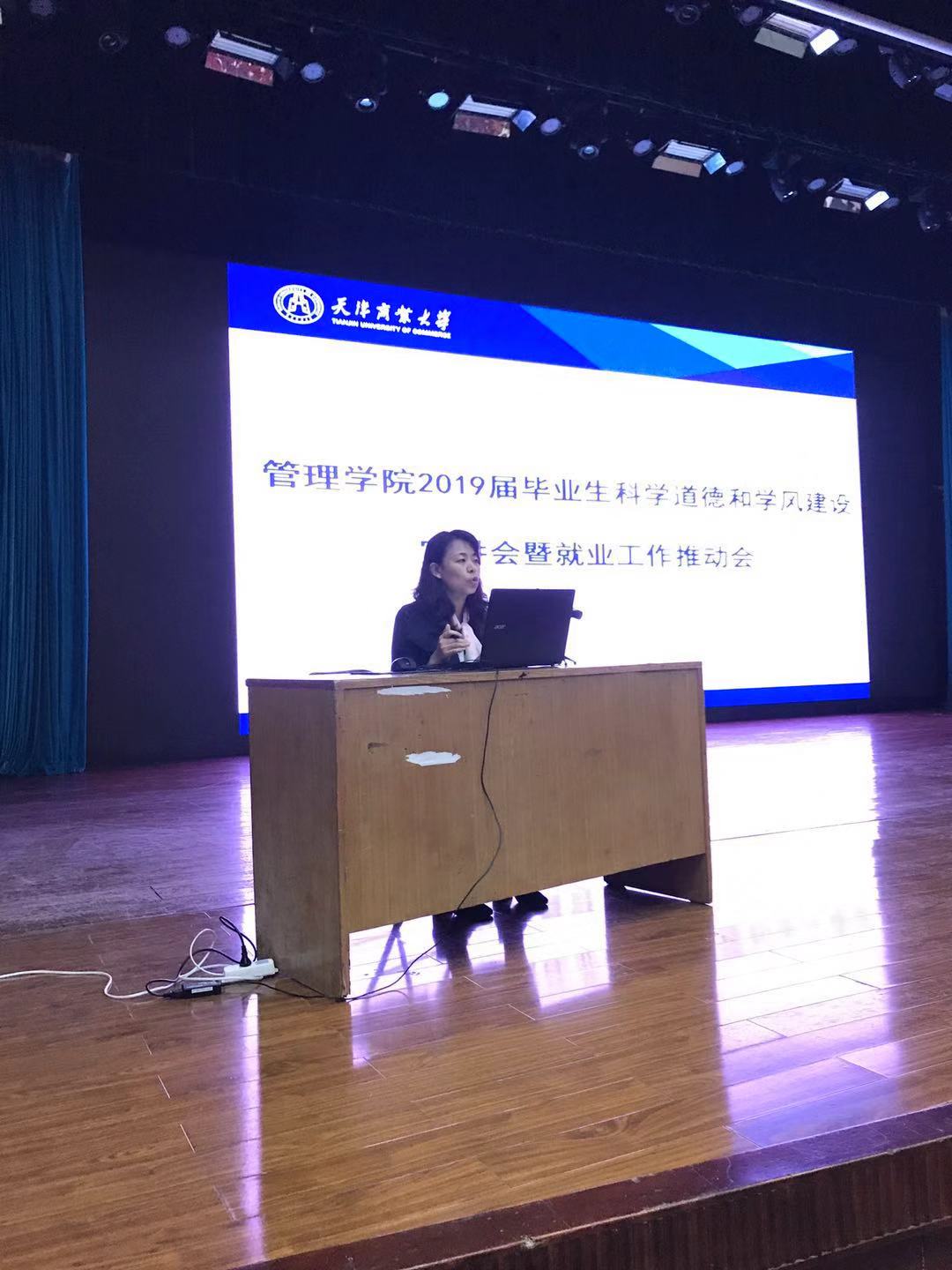 全体毕业生召开学术道德和学风建设宣讲会暨就业工作推动会,教学副经理宗毅、党委副书记王樱洁、教学秘书邵艺瑾、就业辅导员李秀峰参会并宣讲。邵老师从教学管理角度提醒毕业生要关注学分完成情况;李老师从签订三方协议、就业安全教育等方面,讲解了求职、签约等过程中的重点注意事项;宗毅向员工们宣讲了毕业论文的学术规范,要求同学们遵守学术道德,诚信撰写毕业论文。