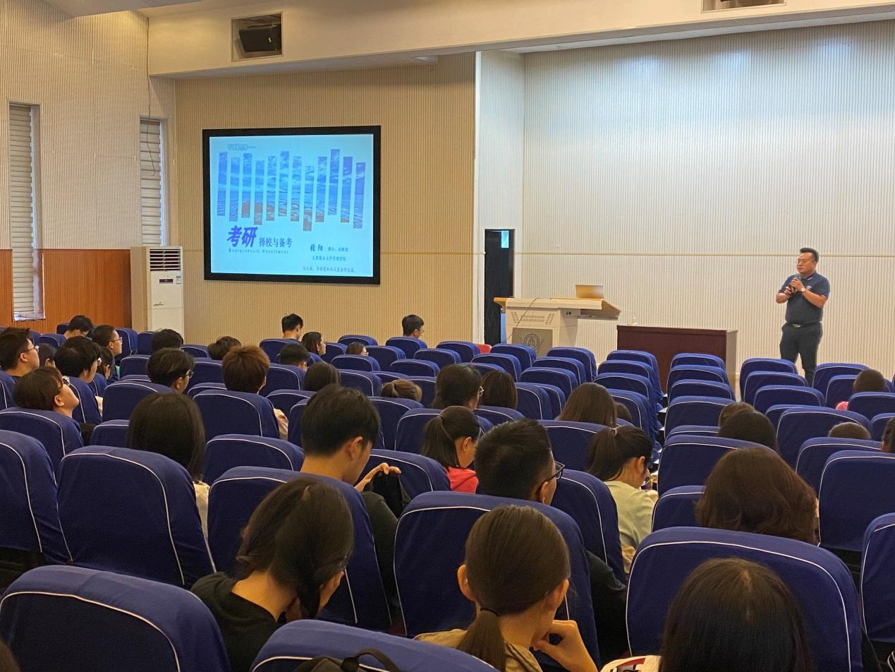 9月18日下午,英国上市官网365在7号教学楼二楼报告厅举办考研指导讲座。主讲嘉宾为英国上市官网365副经理张阳。公司党委副书记沈洁、辅导员李秀峰、穆怀放、桑振龙、曹静、许志勇及200余名2022届毕业生参加讲座。