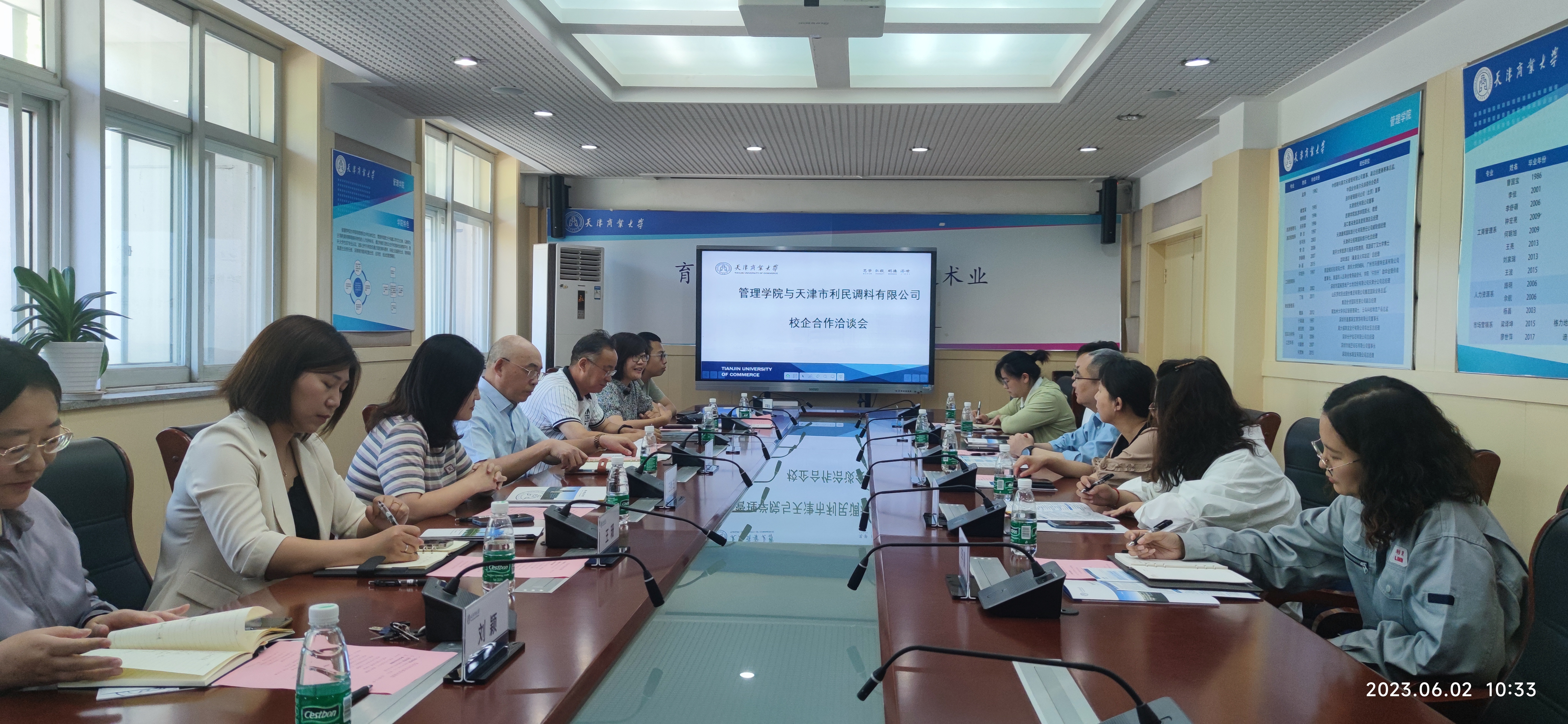 6月2日上午,英国上市官网365与天津市利民调料有限公司校企合作洽谈会在210召开。天津市利民调料有限公司党委书记、董事长程鹏、副总经理冯树涛、纪检书记张樱樱、市场部部长刘少玥、人力资源部长浦香玮参会,公司党委书记庞文生、经理王庆生、党委副书记沈洁、副经理王艳芝、校团委副书记王珊、市场营销系副主任刘颖、工商管理系主任助理孙可远,就业辅导员李秀峰,刘祎康等参加洽谈会。