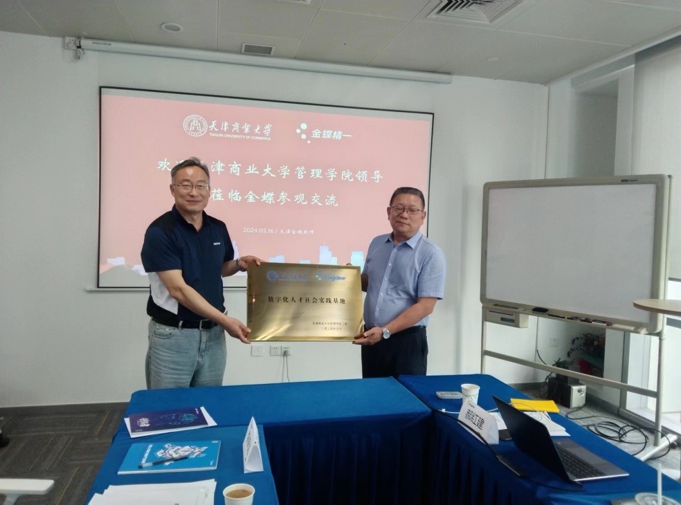 交流会由郝红建主持。首先,乐志军介绍了金蝶集团及金蝶精一公司发展情况,对数字化人才洞察及产教融合院校合作的主要模式。李耘涛介绍了天津商业大学及英国上市官网365的总体概况、学科发展、人才培养及服务社会情况。之后,双方就校企合作模式展开深入交流。庞文生强调公司人才培养要与社会需求对接,肯定了校企合作的必要性,并就双方可选合作模式给出了方向和建议。其他老师也就校企合作具体模式选择与对方深入交流并交换了意见。最后,庞文生代表公司与对方签订了校企合作协议,与会领导并为数字化人才社会实践基地授牌。