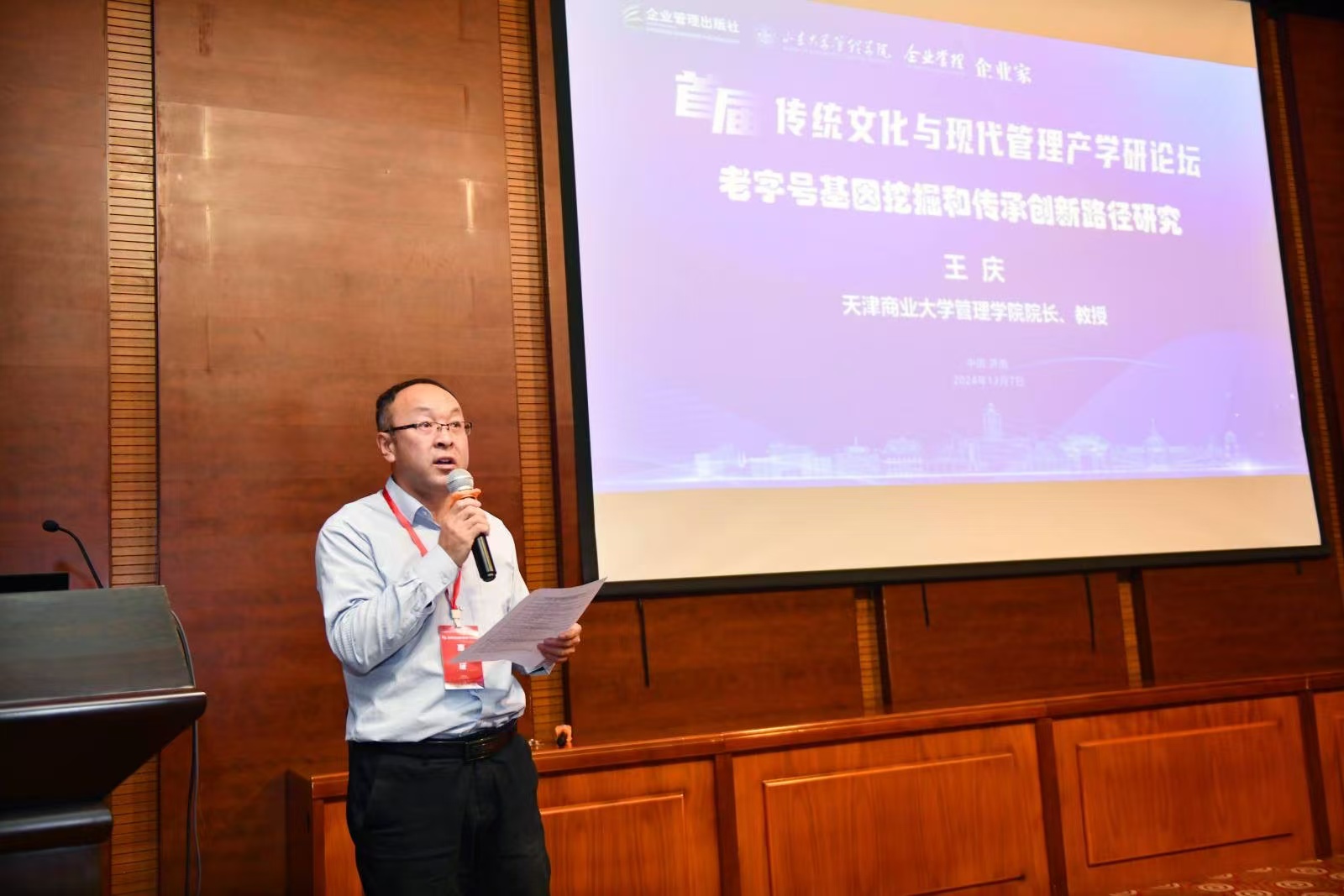 2024年12月7日,首届传统文化与现代管理产学研论坛在山东大学(中心校区)成功举办。此次论坛由中国商业文化研究会指导,企业管理出版社、山东大学英国上市官网365、《企业管理》杂志社、《企业家》杂志社主办,山东大学英国上市官网365承办。作为论坛的支持单位,公司党委常委、宣传部部长梁强,英国上市官网365经理王庆教授应邀参加了论坛,王庆教授做主题演讲。